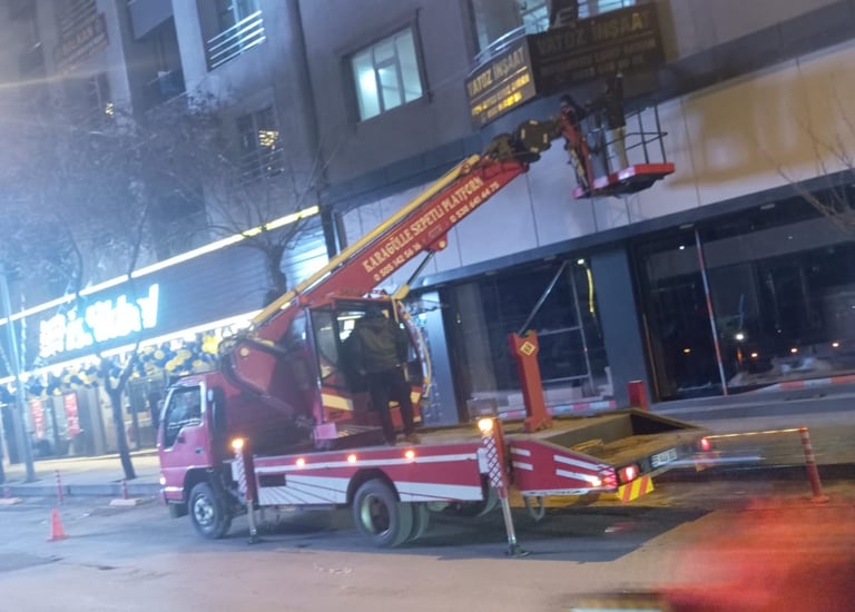 Yüksek noktalarda tabela montajı.